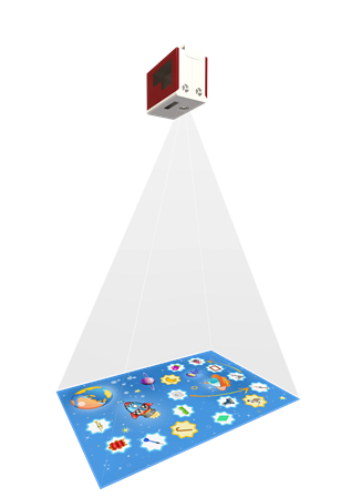 Другими словами, оборудование превращает поверхность пола в большой интерактивный экран. На экране отображается игровой мир, с которым ребенок может взаимодействует в режиме реального времени.Базовая комплектация