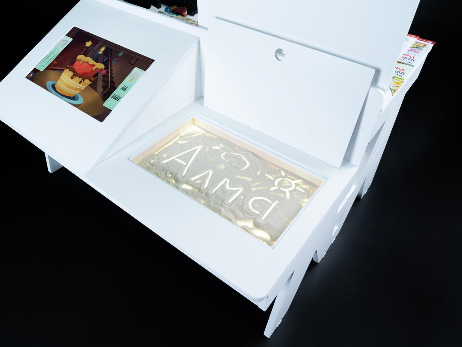 Песочная терапия. Световой песочный отсек, спрятанный под панелью в детском столе, помогает в гармонизации психоэмоционального состояния ребёнка, развития мелкой моторики и креативности.