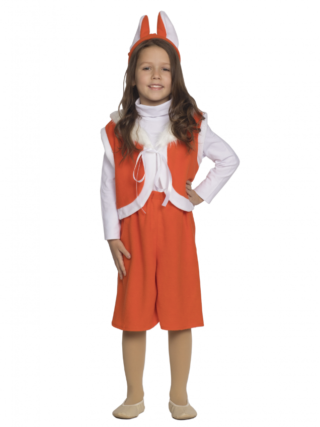 Карнавальный костюм Лисенок разработан специально для утренников в детском саду. Костюм состоит из жилетки, шорт и ободочка с ушками. Жилетка из флиса посажена на подкладку из хлопчатобумажной ткани, украшена искусственным мехом. На груди жилетка завязывается на шнурок. Мягкие флисовые шорты удобно надевать благодаря резинке, пропущенной по талии. Ушки на ободке мягкие и естественно свисают. Рекомендуем дополнить костюм белой футболкой и обувью в цвет костюма.