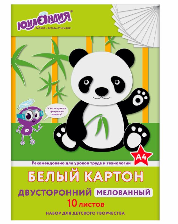 Мелованный картон обладает плотностью 200 г/м2, имеет гладкую, идеально белую (глянцевую) поверхность с одной стороны и белую матовую поверхность с оборота. Его можно использовать как для поделок, так и для рисования, а также в качестве основы для аппликаций. С помощью этого картона ребенок сможет воплотить в жизнь любую творческую задумку. В наборе 10 листов двустороннего картона белого цвета формата А4 (200х290 мм). Творческая инструкция по созданию аппликации на обороте.